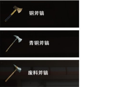 - 青铜斧镐:中期进化者们必备的采集工具,相比于初级斧镐能够明显提升资源开采效率,可采集锡矿等更高级的矿物,为进化者们节省时间、提高效率