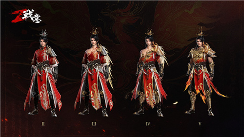 除了炫酷华丽的时装外观外,炽羽丹翎系列时装还是《战意》内第一款包含升级成长属性的时装,时装的外观会随着时装等级所改变,从最初朴素的长裙与长袍升级为气势恢宏的甲袍,同时伴随象征着朱雀的华丽丝带,女角色的黑丝还会随着等级的提高进入“战损状态”,这性感的小细节已经值回票价了有没有?