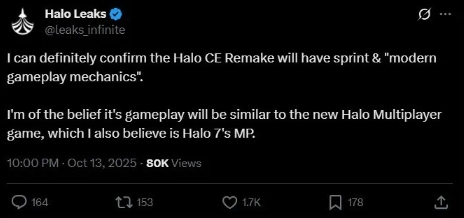 2025-10-16近日知名爆料人Halo Leaks表示:《光环:战斗进化》将采用现代的游戏机制,而非简单的重制。Halo Leaks声称:《光环:战斗进化》重制版将加入冲刺和现代游戏机制,以提升游戏体验。游戏玩法将与传闻中即将推出的《光环7》多人游戏类似