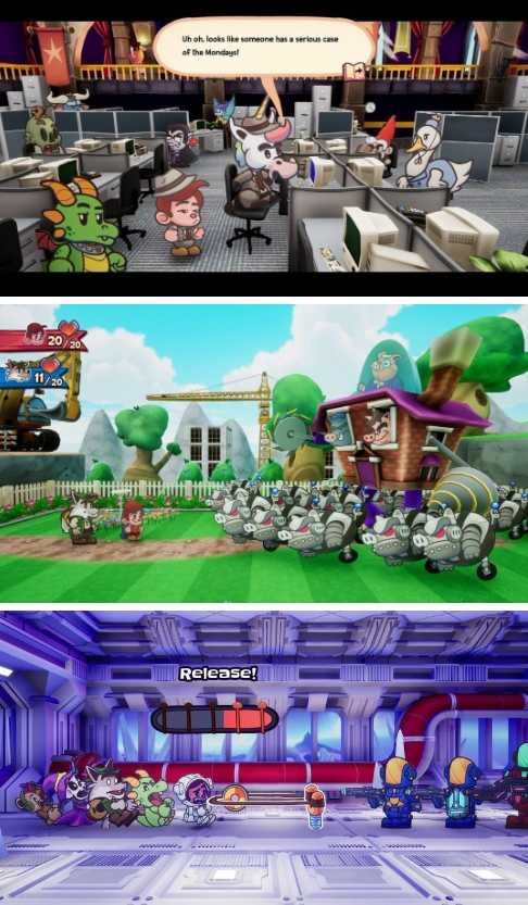《逃出从此以后》受《纸片马力欧》系列经典作品启发,颠覆角色扮演品类!现实世界贪婪的巨型集团闯入童话世界,剥削童话角色的廉价劳动力,新进的故事书主人公必须在公司内部不断晋升,团结其他不满的员工,与大家携手一同努力抗争!