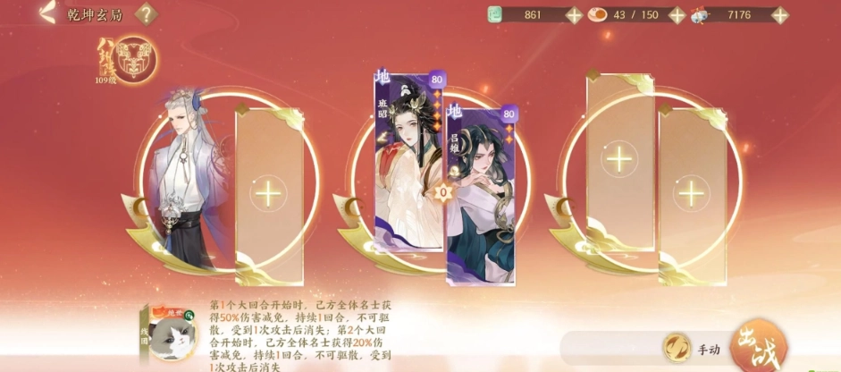 班昭的被动是能够根据友方名士的等级去加三维属性,也就是攻击防御和生命,最关键的是,当pve状态时效果翻三倍,有了它,你就可以去跨练度的打副本,新人有一定要养,能少走很多弯路