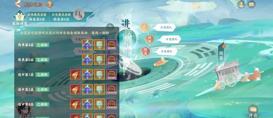 可以看到奖励机制,“元元”的获取停留在,困难第五层,精英的六层通关以后只会给一些通宝和后期洗装备的资料,如果通关有难度的话,可以只拿满困难第五层就行
