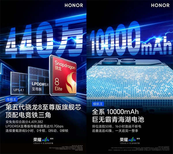随着荣耀东风涡轮散热的官宣,荣耀WIN系列在性能、续航、散热三大核心体验维度的产品轮廓已逐步清晰。此前,荣耀WIN凭借“第五代骁龙8至尊版旗舰芯片+LPDDR5X至尊版+UFS 4.1”的顶配电竞铁三角,安兔兔实测跑分第一名,并且在多家头部媒体的性能实测中全面霸榜,稳坐“性能王”和“电竞王”之位;其搭载的10000mAh巨无霸青海湖电池,在续航实测中断层领先,奠定了“续航王”的宝座。如今,主动散热风扇的加持,也必将进一步提升用户体验,有望再夺得一个“散热王”的称号。
