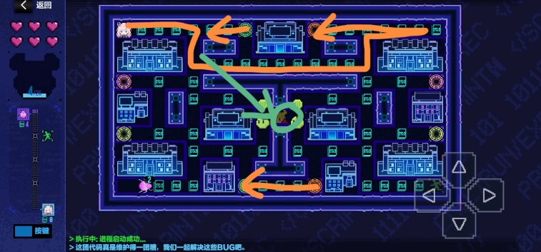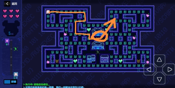 4、虽然开局,报错怪物并没有追击玩家的倾向,但是依然不可触碰,碰到就会掉血。只有开启故障排除模式的时候才可以清怪。