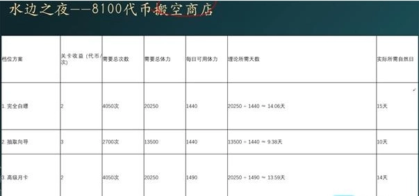 1、假设我们一天睡8小时,一天可用体力为1050,20天总可用体力为21000,商店搬空需要8100代币