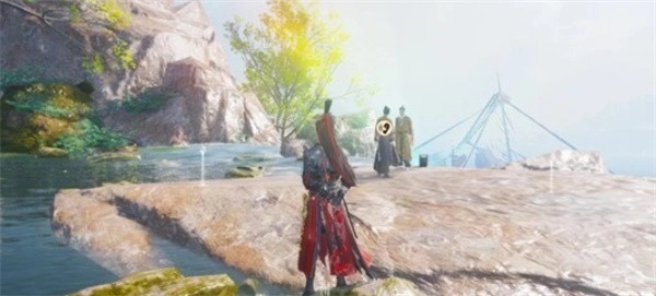 1、传送至嗟叹崖界碑,沿右侧山体攀登,途中可见半山腰湖泊,湖边有NPC【周光宸】,与其对话触发任务。