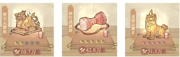 1、主战宝具:目前可选用的主战宝具种类不少,像大庇巫祝鼓、焚天火狻猊、神行戎威鼓、巡天烙日晷、琅嬛锒香囊、邢仪饕纹钺、炁梦黄粱枕都在其列,它们各自针对的阵容与效果存在差异。对于白嫖和低氪玩家而言,花费精力去搞各类针对性宝具,不如选择通用性更强的;焚天火狻猊就是可以无脑选的宝具,无论阵容怎么变动,它的通用性都是最高的,其效果是加怒与首次增伤,适配于任何阵容。