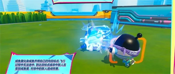 3、三技能释放后会直接变身成超大咸鱼形态,不仅移动速度大幅提升、还能免疫所有控制效果,并且可以衔接小技能打出连招实现击飞,在决赛圈开启大招的话几乎是无法被反制的。