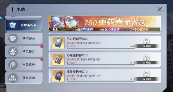 5、额外惊喜:「启程重构」卡池可免费领取10张启程十连重构券,抽后直接自选心仪SSR角色。