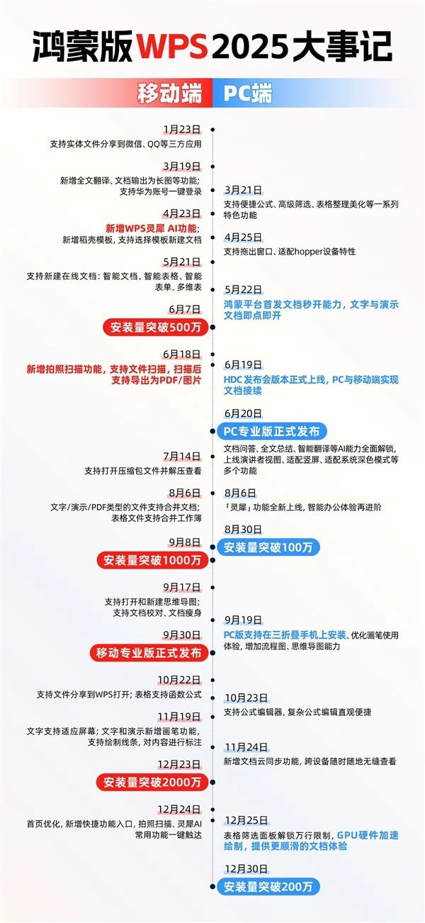 从四千万行代码的重构到三端功能的无缝衔接,从两千万用户的信赖到政企商用的扎实落地,我们始终以技术之力打破办公的边界!2026年,我们将继续携手并肩冲刺,推动更多创新特性从构想变为现实,把更流畅丝滑的全场景办公体验带给每一位用户,与大家共同描绘鸿蒙办公生态的崭新未来。