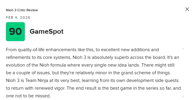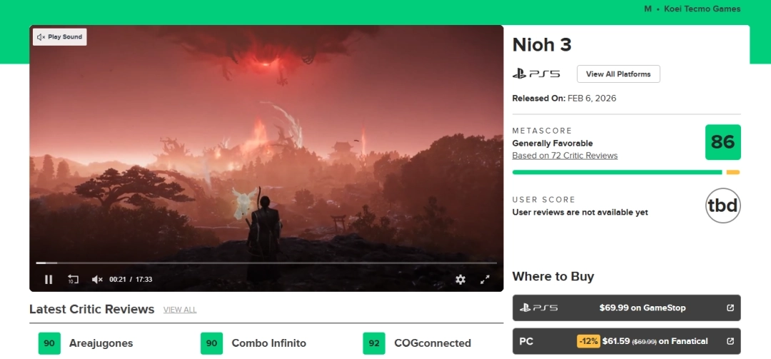 2026-02-05《仁王3》确定于2月6日正式推出。近期,这款游戏的媒体评分已经公布。到现在为止,《仁王3》在M站的媒体平均分是86分,该评分共汇总了72家媒体的评价。值得一提的"/> 2026-02-05