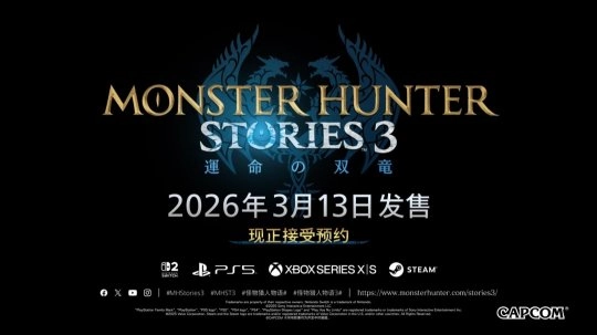 《怪物猎人物语3:命运双龙》定于3月13日在PlayStation 5、Xbox Series、Switch 2和Steam平台上线。