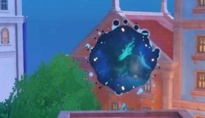 登上平台后,便进入了收集环节。屋檐周围分布着5个蓝色的水晶球,必须全部收集齐全才能触发秘境入口。第一个水晶球在绿色房屋的正前方;第二个在右侧住宅的屋檐边缘;第三个放置在右手边的长条座椅上;第四个位于广场中央的基座旁边;最后一个则是在旋转门右侧机器人模型的左肩部位。按照这个顺序寻找,就能集齐所有蓝色水晶球。