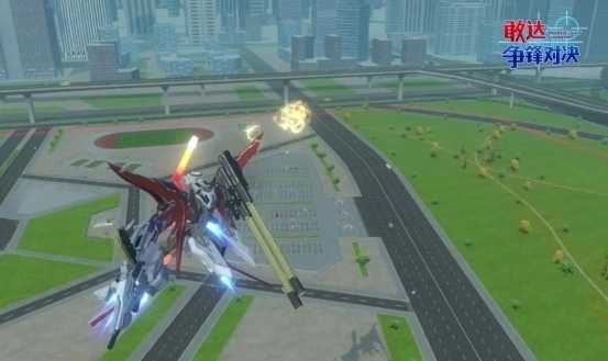 【普通射击】按下射击键。发射磁轨炮以及导弹射击并击飞目标。