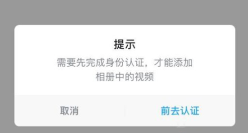 在发帖子页面中,点击【视频】功能图标,然后点击[上传相册视频】,会弹出提示框,显示需要完成身份认证后,才能系加相册中的视频,如下图所示,大家点击[前去认证】,就可以修改实名认证了。每个账号只能修改一次实名信息。
