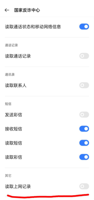 大家可以看一下国家反诈中心APP在手机上的敏感权限: