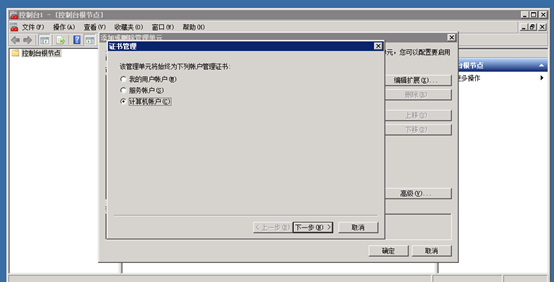 4.证书→计算机账户(其他的都保持默认,无限下一步)