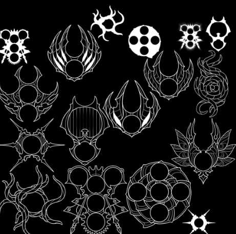 在《丝之歌》版块上,有粉丝分享了一个相当有趣的发现。在深入挖掘《丝之歌》的游戏文件后,他找到了一张包含游戏纹章的图片,从收割者、巫妪到萨满和猎人涵盖了本作全部的纹章。但这张纹章图谱中包含了一个未在正式版出现的纹章——初代《空洞骑士》的起始地点:圣巢的纹章。虽然从纹章的简短外观难以判断它原本会对大黄蜂的技能产生何种影响,但可能性十分广泛。