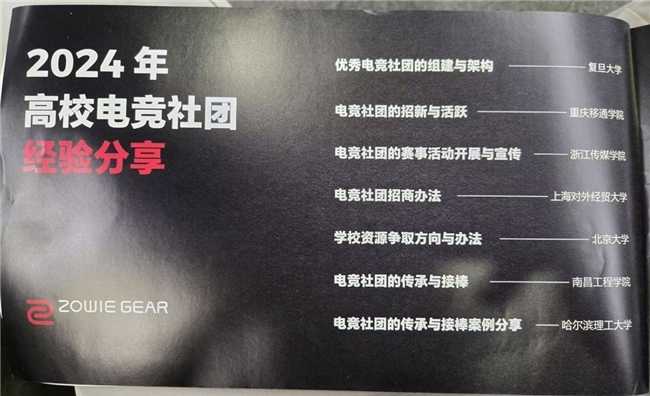 ——卓威在邀请全国高校电竞社社长的同时,也通知他们带着接班人、更年轻的社团骨干来参加活动,让大家感受到自己不是在单兵作战;他们将去年小型交流会上,优秀电竞社团们分享的内容、PPT整理成册,公益性地发放给现场的同学、老师,希望其中宝贵的经验能够带来灵感。
