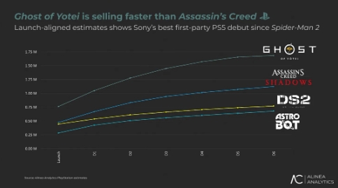 若将零售商采购量计入,总出货量已突破200万份,预计带来约1亿美元收入。尽管首发表现强劲,但分析指出其销售速度略低于前作《对马岛之魂》(该作发售三天内销量超240万份)。
