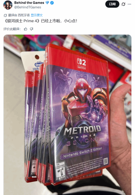 Switch 2的重磅新作《银河战士Prime 4:超越》定于12月4日推出,近日有海外玩家表示已提前获得游戏,并公开了实物照片。