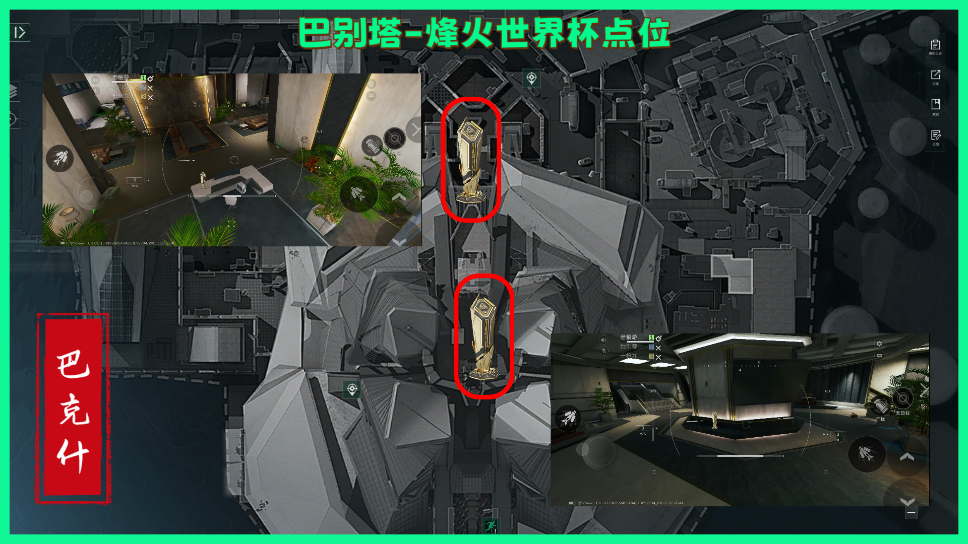 在《三角洲行动》游戏里,烽火世界杯纪念奖杯均为露天刷新的物品,S7赛季期间会在零号大坝、巴克什、航天基地这三张地图中出现。下面小编就为各位玩家带来巴克什纪念杯全点位的详细位置攻略,帮助大家顺利找到这些奖杯!