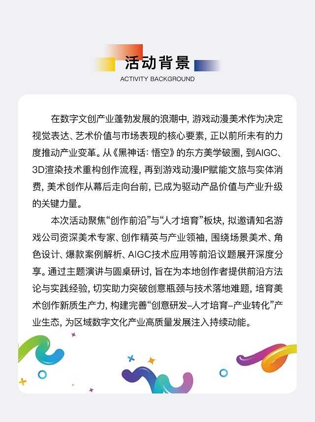 活动将于12月23日(周二)13:30正式开始。我们诚邀每一位热爱游戏动漫美术的行业伙伴来到现场,与行业先锋面对面,共探进化之路,共绘共生蓝图!