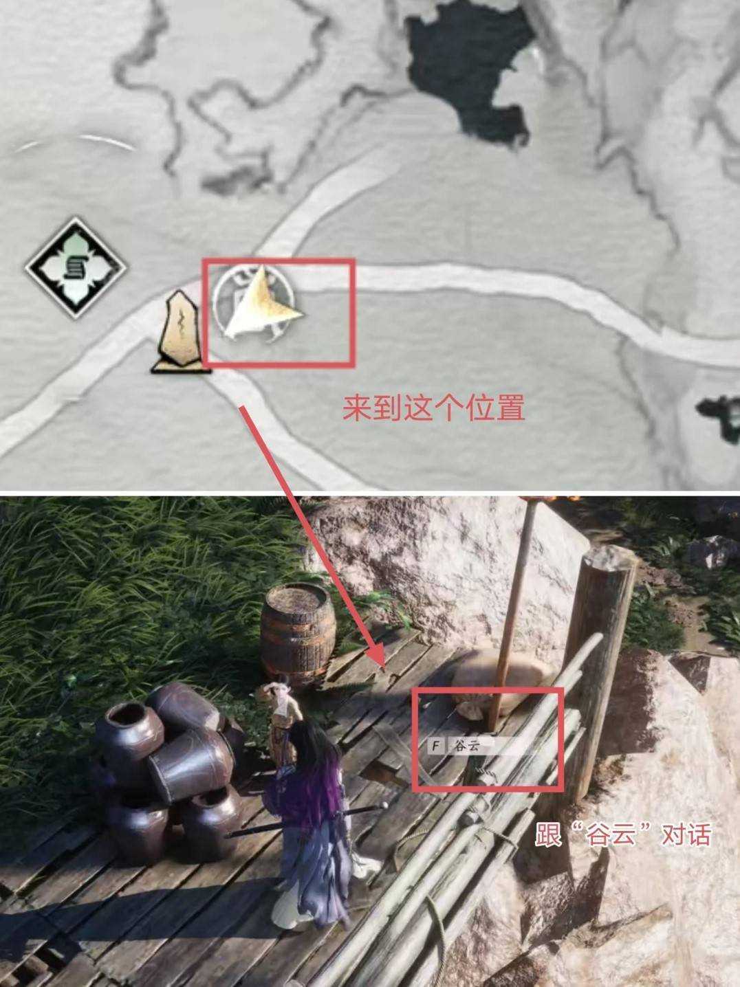 来到下图位置触发任务指引,找到谷云并对话,然后根据指引找到昏迷的穷奇师→获得面饰【穷极万物】