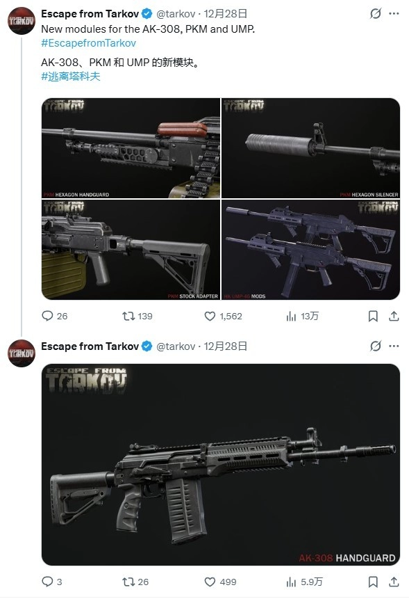 · 为现有的AK-308、PKM、UMP等武器提供新的改装模块。