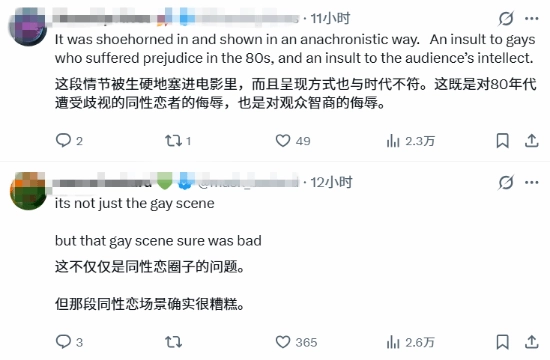 甚至支持同性恋的观众也不叫好:“不只是那个同性恋场景的问题,那段同性恋场景确实糟糕!”