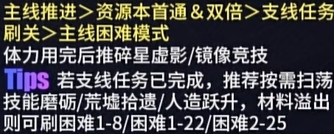 主线推进>资源本首通&双倍>支线任务刷关>主线困难模式