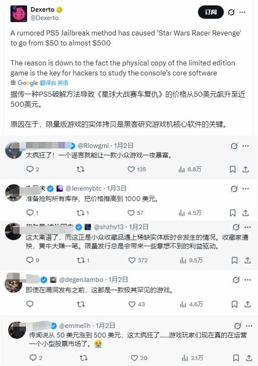 小众游戏价格飙升十倍!PS5或将破解的消息让玩家们议论纷纷(小众游戏)
