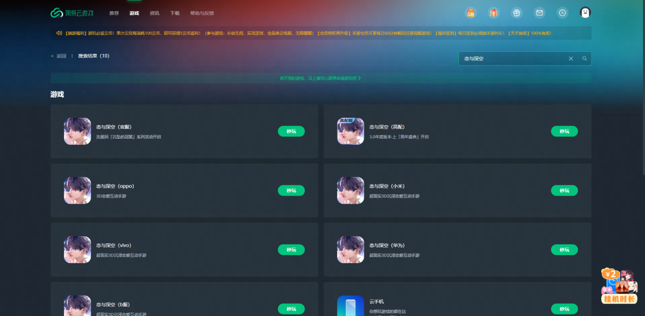 访问网易云游戏官网(https://cg.163.com),搜索"恋与深空";