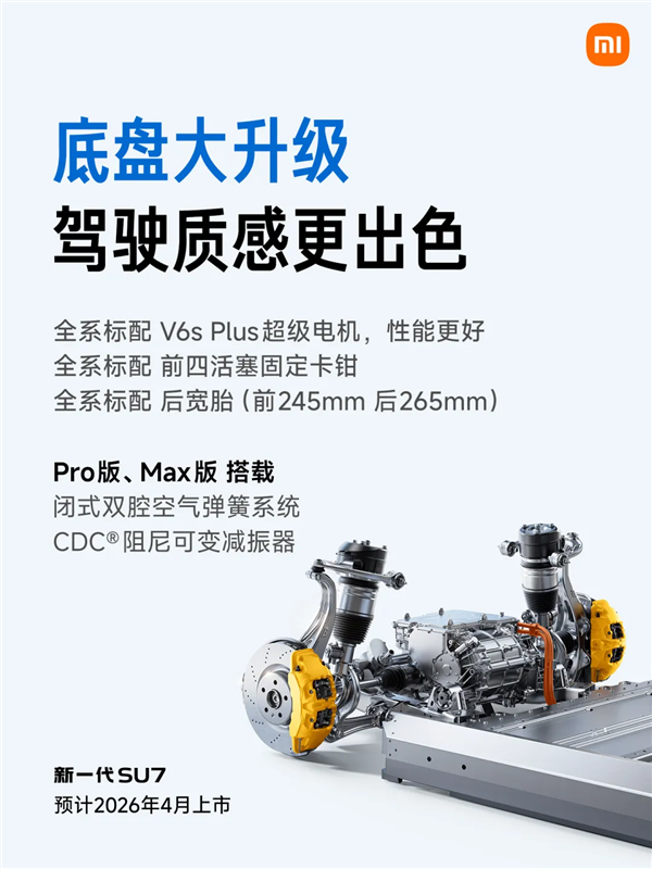 以前 SU7 低配是双活塞的,现在全系标配四活塞的固定卡钳,刹车性能更好。
