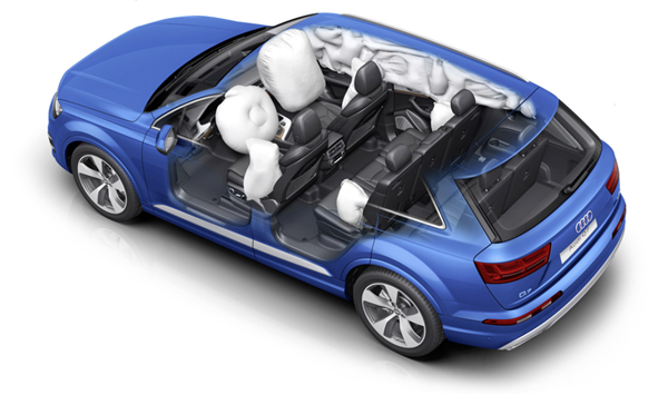 咱们拿奥迪 Q7 示意一下,就后排手边那个小气囊