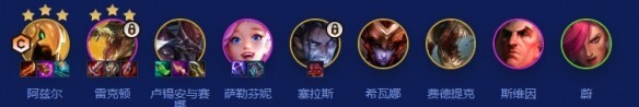 1、前期任意前排配后排带羊刀过渡,烬配小炮开相关羁绊。卡牌、艾希也可以用,来沙皇后开始控恕瑞玛。