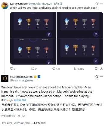 工作室解释称,团队目前正全力专注于开发《漫威金刚狼》。因此,有关《漫威蜘蛛侠3》的消息最早将在《金刚狼》项目完成后才会公布,这意味着粉丝至少要等到2027年才能看到正式预告或公告。