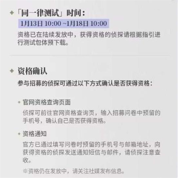 官方指出,成功获取测试资格的玩家,可登录官网的资格查询界面,凭借报名时填写的手机号来核实资格情况。另外,测试资格的通知也会以短信和邮件的方式同步发送,还请玩家及时关注这些信息。