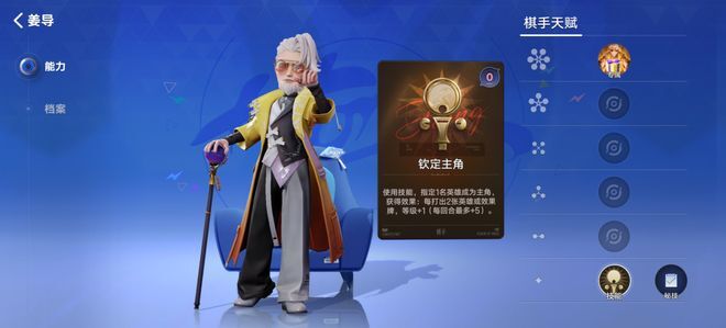 游戏中的棋手不再是装饰,每个棋手都拥有一个贯穿全局的独特主动技能。例如棋手“姜导”的技能可以定向培养一名核心英雄快速升级。棋手技能直接决定了本局游戏的阵容核心与资源倾斜策略,玩家在开局选择棋手时就已定下大半基调。