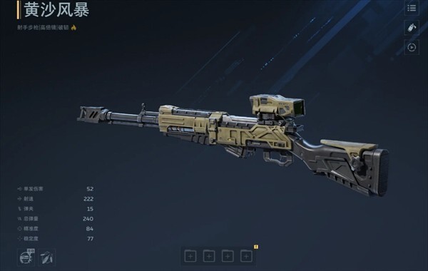 在主界面点击“武器”选项后,在对应武器名称的下方区域,就能看到该枪械所属的枪械类型、适配的倍镜类型以及具体的伤害机制信息。