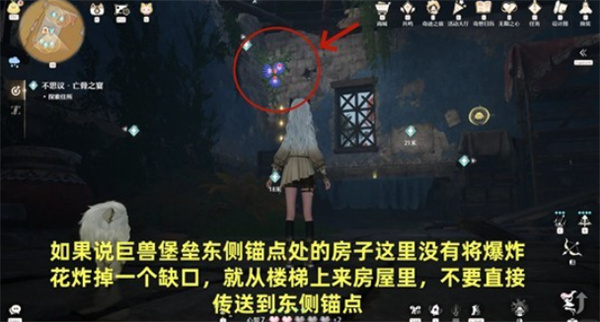 若之前探索过洞窟且房屋爆炸花已炸出缺口,可直接传送到东侧锚点