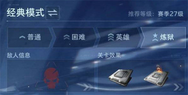 经典模式:普通、困难、英雄、炼狱四个难度。
