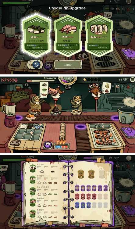 《哥布林寿司》游戏中,总是处于猥琐弱小恶魔印象的哥布林当寿司厨师?为什么不行呢!但要快,房租几分钟后就到期了!升级餐厅、菜单和食材,为你的哥布林同伴奉上洞穴里能找到的最棒、最昂贵的寿司!
