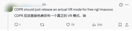 更有玩家表示,如果CDPR官方不允许这样的mod出现,那就该发布官方的VR版本来填补市场漏洞:
