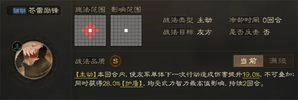 3、主动战法-0CD主动:本回合内,使目标友军下一次造成的伤害提升14%(受智力影响),这里介绍的是,下一次造成伤害。但现有增伤技能是下一次行动造成的伤害,还是会有点区别。
