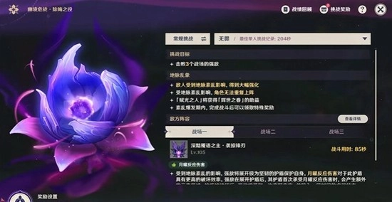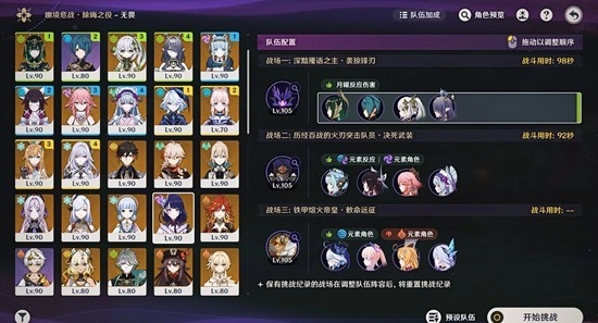 推荐阵容:菲林斯月感电队,伊涅芙月感电队,龙王感电队,瓦蕾莎感电队,高练火神队,高练丝柯克队。这一间相对简单,解法很多。基本上一个伊涅芙作为插件加入水C或雷C队伍即可应对,也可以直接使用砂糖、皇女、行秋/少女这样的搭配。如果练度足够,火神或丝柯克队伍甚至可以无视机制,直接强破护盾。