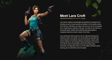 在冒险过程中,劳拉时常涉足充满收藏家、盗墓者及其他威胁的危险地下世界。凭借出色的生存能力以及对多种武器的熟练掌握——包括她标志性的双持手枪——她始终能够应对各种挑战。优雅与坚韧并存的劳拉,过着充满高风险冒险与惊人发现的人生,她作为传奇“盗墓者”的声名仍在持续增长,在世界各地激起敬畏与赞叹。