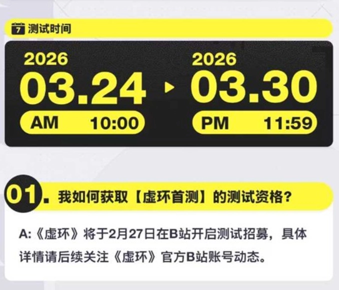 《虚环》首测计划将会延期,于2026年3月24日正式开启。让各位苦苦等待的V圈粉丝和玩家朋友们失望了,对不起!