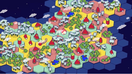 不仅如此,设计软件还会给你一些建议,比如连接颜色一样的地块,或者让特定数量的山丘树木连在一起。放轻松,请随心创造缤纷的星球,摆的乱一点也没关系。星星们只是会有些不同的喜好,你可以完全相信你的电脑搭档。
