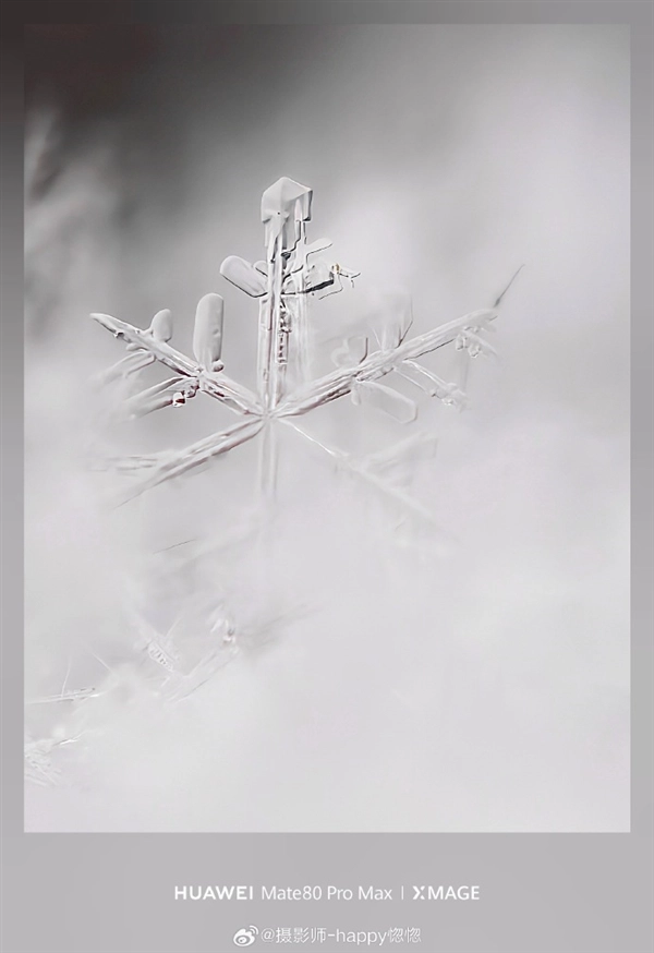 1月23日消息,今日,摄影师“happy惚惚”分享了一组使用华为Mate80 Pro Max的10倍长焦镜头拍摄的雪花特写照片,同时还附上了拍摄雪花的教程。